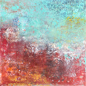 Ignite is part of the Spectrum Series, an exploration of colour as energy and transformation. Layers of turquoise, red, and molten orange are built with oil and cold wax, then partially reduced to reveal texture, movement, and depth. A subtle circular element introduces a focal point of tension and release, suggesting ignition, momentum, and the moment when colour shifts from atmosphere to action. The square format concentrates this energy, inviting close, sustained viewing.